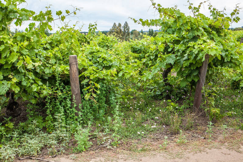 De veroveraars waren Spanjaarden afkomstig van de Canarische Eilanden. Zij brachten stekken mee van de daar aanwezige druivenrassen. Het huidige wijngoed omvat 87 ha grond, waarvan 16 ha beplant is met wijnstokken. De zandbodem is van het type Trumao, vulkanische as van de oude lava rivier. De oudste stokken dateren uit 1776. Ze zijn van het ras país (listan prieto) en goed zijn voor meer dan de helft van de totale productie. De andere helft bestaat uit cabernet sauvignon, malbec, moscatel de alejandria, corinto (chasselas) en torontel (torrontés sanjuanino).